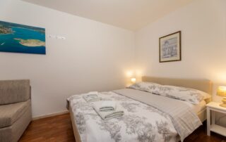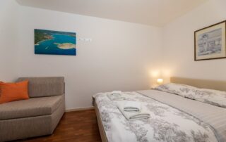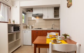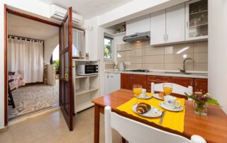 Located at the ground floor. Studio apartment 1/2+1, like apartment 1/4+1 also has a sea view, a small beach and a nice garden with diverse Mediterranean plants. Provides the ability to accommodate a maximum of two persons + one person on additional bed located in the same room. On the terrace that overlooks the sea you can eat breakfast or drink coffee daily, while surfing the Internet via our free WiFi network! You get to use two deck chairs, free of charge, on which You can enjoy the sun your whole holiday.